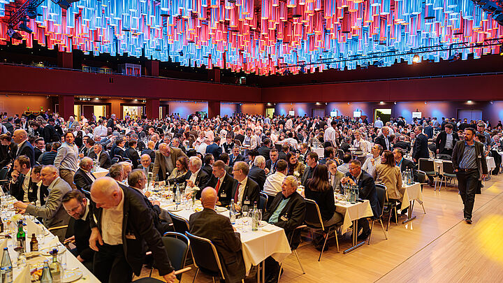 Gegen Abend änderte sich der Rhythmus: Zunächst ein stilvoller Sektempfang im beeindruckenden Foyer des CCH – ausgerichtet von Socotec –, bevor der Festabend selbst begann. Restlos ausgebucht, mit einer Atmosphäre zwischen entspannter Geselligkeit und fachlichem Austausch bei einem guten Essen. Und weil Traditionen bei der STUVA Bestand haben, öffnete später die legendäre Bar von Keller Grundbau. Manche Diskussionen sind morgens besser, andere abends intensiver; in Hamburg gab es beides.