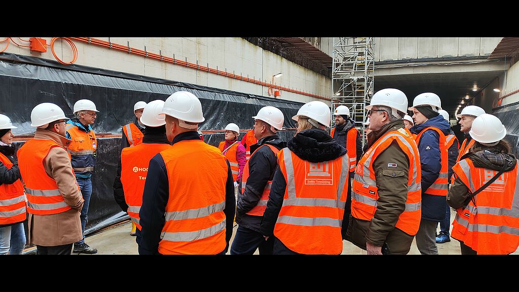 Nach zwei Tagen Messehalle und Vortragssaal nahm die Tagung am dritten Tag wie immer eine völlige Wendung: weg mit dem schicken Anzug und rein in die Gummistiefel! Von der STUVA handverlesene Fachexkursionen warteten auf die Teilnehmer, denen es gelungen war, einen der begehrten Plätze zu erhalten. Wer dabei war, konnte sich über exklusive Führungen zu Großbaustellen und Projekten freuen – teils ging es dabei in Bereiche, die sonst niemand zu Gesicht bekommt, stets geleitet von projektverantwortlichen Kollegen, die teils selbst vorher an der eigentlichen Tagung teilgenommen hatten. So gab es unter anderem Exkursionen zu den letzten Rohbauarbeiten der Verlängerung U4 Horner Geest, zu den ersten Baustellen des Großprojekts U5, zum Teilchenbeschleuniger XFEL/DESY, zum Tübbingtunnel der ElbX-Querung im Rahmen von SuedLink und noch einige andere. Die aufwendigste Tour mit 2,5-stündiger Busanreise führte die Teilnehmer zum Megaprojekt Fehmarnbelttunnel, wo nicht nur die deutsche, sondern auch die dänische Baustellenseite besucht wurde. Als schließlich auch diese Gruppe glücklich am Abend wieder in Hamburg eingetroffen war, war es auch schon wieder vorbei mit der diesjährigen STUVA-Tagung.